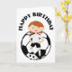 En söt fotbollsformad för fotbollsspelaren fläkt eller fotbollsspelaren, med en fotbollsflicka i en svart och vit fotbollsuniform som håller en fotboll. Den unga fotbollsstjärnan står framför en stor svart och vit fotboll. Perfekt för en födelsedagspresent eller partiförmån. Fotbojpojke och annat team färg. Om du vill ha en annan kombination av färg, kontakta oss genom CelebrationBazaar- butiken.