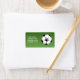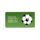 Snygg svart-vit seriefigur fotboll på en grön gradientbakgrund och ett anpassningsbart textområde för ditt namn och adress.