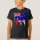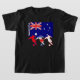 Lek för tre fotbollspelare framme av den australiensiska flagga. Land kända Australien är på sidan