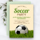 Inbjudan dina gäster med coolan födelsedagsfest inbjudan med en fotboll på en gräsmatta med modern typografi mot en beige bakgrund. Lägg bara till din händelseinformation i den här mallen som är enkel att använda för att göra den till en inbjudan av typen en. Vänd över kortet för att visa en vacker grönt gräs struktur på baksidan av kortet.