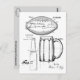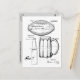 Fotboll & Beer Mugg, Flaska, patenterbart vykort - tre vintagars patentmodeller har slagits ihop för att bilda en slutgiltig fotbollskjorta - spela eller titta på fotboll och ha en lång flaska av öl och en öl mugg att hälla in den i. Utformningen omfattar patent data på dessa specifika ikoner samt teckning-detaljer, uppfinnare namn och namnteckning. På baksidan av vykortet finns det ett ställe för er att lägga till ert eget namn och adress, om ni så önskar.