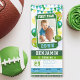 Få redo för en tuchdown firande med den här vibrerande fotbollen Biljett Sunny Boy 1:a födelsedagsinbjudan! Designat att se ut som ett riktigt spel biljett, det är perfekten till gästerna i inbjudan för att hedra på din lilla mästare. Den här kraftfulla amerikanska fotbollsinbjudan blåser med en ljus och solig nyck av gröntar och blåsor med lite gult, och fångar hela upphetsningen av speldagen. Den innehåller en speciell fotomall som visar ditt vackra pojke, skapar honom stjärnorna i sitt eget första födelsedag party. Ett exempel på hur man kan få extra att bli glad över den här unika designen är att spela flaggor och festliga ballonger. Perfekt för en fotbollshuvudfödelsedag, en idrottsdag i party, för barn eller någon pojkes första födelsedagsfirande, det här anpassadet är inbjudan som anger perfektens ton. Samla dina vänner och din familj för att fira din lilla som når sin första födelsedagskalender med en spännande fotboll party. Anpassa enkelt alla detaljer för att skapa en minnesvärd personlig-fotbollsinbjudan som är redot för spark!