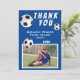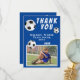 Fotboll Boll Blå Sport Tack Coach Kort. Fotboll tack tränare kort med foto, tack text, tränarens namn, lagets namn, år, ditt namn och fotbollar. Foto tack kort - lägg till ditt foto i mallen. Anpassa kortet med namn och din text.