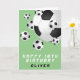 Fotboll Boll Grön Pojke Glad Födelsedag Kort. Anpassa med ditt namn och skapa ett coolt födelsedagsgratulationskort för en fotbollsspelare eller fotbollsfan.