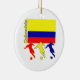 Lek för tre fotbollspelare framme av den chilenska flagga. Land kända Chile är på sidan