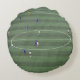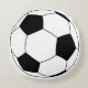 Runt dekorativ kudde med bilden av fotboll på framsidan och ett spel/fält på baksidan.