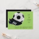 En sportig fotboll och coola/fotbollstemat födelsedagsfest inbjudan lämplig för en pojkes födelsedagsfest med en bild av fotboll och fotboll/fotbollsskor mot en anpassade funky lime grön bakgrund. Texten kan anpassas helt och hållet till dina egna personuppgifter.