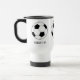 Resa kopp med fotboll och eget namn. Personlig för fotbollsspelare, fotbollsspelare.