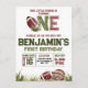 Redo för en fotbollsfödelsedagsfest? Denna design har handmålade akvarellföremål som en fotbollshjälm och fotboll tillsammans med typografin "First Year Down" och "Little Rockie". All text är redigerbar på denna födelsedags-budgetvänliga postkort och inbjudningar finns också tillgängliga! Designen är lämplig för pojkar och är helt anpassningsbar för 1-årsdag, 2-årsdag och äldre barn. Hitta matchande föremål i min butik.