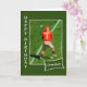 Berätta för din barnson att du är hans #1 fläkt med det här födelsedagskortet som ger en målning av ett fotbollsmatcheri utklädd i rött.
