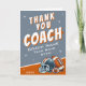 Fotboll Hel Amerikansk Fotboll Tecknad Tränare Tacksamhetskort. Visa din uppskattning med detta roliga och hjärtliga tacksamhetskort designat speciellt för tränare! Med en djärv tecknad illustration av en fotboll och hjälm i orange, grå och vit är detta kort perfekt för ungdomslag eller individuella spelare. Bra för säsongsfinalgåvor eller bara för att tacka en inspirerande tränare. Lägg till ditt meddelande inuti eller sudda ut det.
