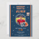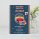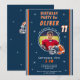Fotboll Hjälm Tecknad Bild Födelsedagsinbjudan. Rolig och modern inbjudan till fotbollsfödelsedagsfest. Med en djärv tecknad illustration av en fotboll och hjälm. Med en livfull illustration av en klassisk röd fotboll och snygg hjälm i orange och grå färger mot en cool blå bakgrund med vita stjärnor, är denna inbjudan perfekt för alla sportälskande födelsedagspojkar eller -flickor. Helt anpassningsbar - lägg till dina evenemangsuppgifter och foto.