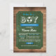En inbjudan till en babydusch till pojke. Bakåtskriften ingår.