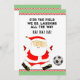 Helgdagskort för fotboll för fotbollsspelare, tränare eller futbol-sportfantast med jultomten som sparkar fotboll.