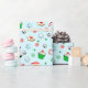 Kreativets fotbolls-temade julklapp eller party dekoration med julfotspelare omgiven av helgdag-helgdag mönster.