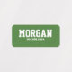 Den här fotledade klädetiketten har en grönt med turfbakgrund och plats för namn och kontaktinformation. Perfektens för barn, interpoleringar, tonåringar och vuxnor för att märka idrottsredskap, gruppuniformer eller andra kläder.