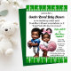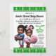 Gör dig redo för en matchdagsfirande med denna roliga fotbollstemanade könsutslöjningsinbjudan! Med en söt baby-fotbollsspelare i en blå tröja och en söt baby-cheerleader i en rosa tutu, sätter denna inbjudan den perfekta tonen för en sportstematisk könsutslöjningsfest. Den gröna fotbollsplanbakgrunden och det kreativa textinnehållet gör denna design till en touchdown för alla blivande föräldrar som älskar fotboll.