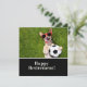 Fotboll lycklig pension med leende hund på grönt Card