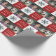 Fotboll med jultomteluva Snöflinga Foto Presentpapper. Röd och vit bakgrund med en rolig fotboll med röd jultomteluva. Detta julpresentpapper är det perfekta sättet att förpacka presenter till barn och tonåringar och skapa ett bestående minne. Anpassat foto, snöflingor och en boll med jultomteluva kommer att tillföra en lekfull och glad ton, medan det anpassade fotot gör det verkligen unikt och speciellt.