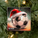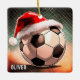 Fotboll med Red Santa Hat Namn jul Ceramic Ornament. Lägg till ditt namn eller radera det. En underbar julklapp till någon som har fotboll i kärlek.