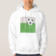 En fotboll och ett mål på grönt gräs. Den här designen ser ut att gälla i Manar Hoodie