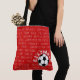 Smart tittar fotboll: väska för att ta med sig det viktigaste i verksamheten eller det stora spelet. Djup röd över all text skriver ut mönster med idrottsfraser. Dold fotboll och snyggt kurvformad namn-text. Två stilar-kor-kroppar eller en tote- i två storlekar. Anpassa texten enkelt.