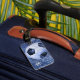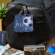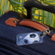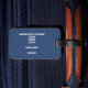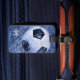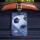 Flickans fotbolls bagagetong med abstrakt av en fotboll sparkade precis in i målet, "klickning på garnet", blandad med ett grungande digitalt struktur och blått färg - anpassa med namn och monogram på framsidan, adress och mobila nummer på baksidan - av katz_d_zynes
