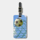 Fotboll som netto skjutas i mål med blå himmel- och vitmoln som bakgrund. Symbol av succes i sport. Bollen har svart med vitfärger, är delen i solen, och delen är i skugga. Fotoet uttrycker rusar, succes, segern och att segra