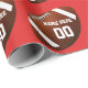 Skriva DITT NAMN, och Jersey NUMRERAR, när, i texten boxas mallen till din höger. Se den synas all över den hela födelsedagen, fotbollpartyet eller julfotbollen som slår in papper.