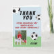 Fotboll Sport Barn Födelsedag Foto Tack Kort. Fotbollstematiskt födelsedags-tackkort med ett tackmeddelande, barnets namn, barnets foto och fotbollar. Perfekt för barn som älskar fotboll och sport.