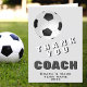 Modern Fotboll Tack Coach Kort. Kortet har en svart-vit fotboll. Bra kort för att tacka idrottstränare, gymnasielagstränare, mamma eller pappa tränare, etc. Anpassa valfri text på kortet. Lägg till tränarens namn, lagets namn och år.