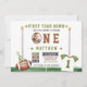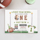 Fira din lilla MVP med denna charmiga akvarellfotbolls inbjudan till 1-årsdag, designad för en söt och sportig "First Year Down"-fest. Denna lekfulla och moderna layout har ett par målstolpar, en stiliserad grön fältkant och en handmålad fotboll som bär en födelsedagsfesthatt, vilket ger temat en fantastisk touch.