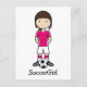 En cute tjej som bär rosa fotbolls-kläder, mellan hennes fotboll är en fotboll.