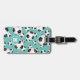 Den här fotbolls-temataggen har ett slumpmässigt mönster av fotbollar av olika storlekar som ligger över anpassadets ljustealbakgrund - personliggör med ett monogram på framsidan, adress på baksidan - av katz_d_zynes