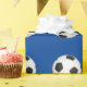 Slå in papper som visas med en sportfotbollboll, skriv ut på en blåttbakgrund. Skräddarsy detta objekt eller köp, som är.