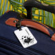 Fotbollboll som ut slår sönder adressen bagagebricka