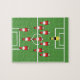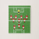 bild av en fotboll/ett fotbollslag i en inställning för bordfotbollstil. I röd och vitfotbollsats.