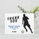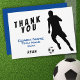 Fotbollsblå tack för ditt träningskort. Tack för träningskortet med tränaren namn, laget namn, år, ditt namn i orange. Svart silhuett av en fotbollsspelare med fotboll. Baksidan är i blå färg. Anpassa kortet med namn och din text. Underbart tack för fotboll/fotbollslandskassan!