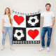 Fotbollsblanket för Fläkt: En vacker filt för fotboll och fläkt, med en svart och vit schaktare för mönster med fotbollar på svarta fyrkanter och ljusröda hjärtan på vita fyrkanter och svart och vitt fotboll gräns överst och grund. Det är en vacker dekoration för sovrummet, och perfekten för fläkt att hålla sig varm under kallets fotbollsspel i raset.