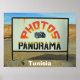 "Photos panorama"-skylt, nära Tamerza, i Saharaöknen och Atlasbergen i westerna Tunisien