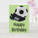 En snyggt och ett sött fotbollstema utformar födelsedagskort för en sportig pojke eller man med en utformning av fotboll och fotbollar. Den här fotbolls-/temadesignen har anpassade som kan ändras till "Grattisar" eller något annat relevant tema.
