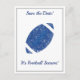 Söt Royal Blå och Vit Fotboll Save the Date eller Fotbollsfest Inbjudan - Perfekt för tailgating, barn och herrars fotbollstemanade fester. Kolla in tallrikarna och koppar också. Anpassa för alla evenemang också.