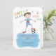 Fotboll / fotboll liten pojke födelsedagsfest inbjudan med en rolig barn karaktär iförd sport outfit med åldern nummer på t-shirten. +++++++++++++ Lätt att anpassa med dina detaljer!