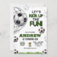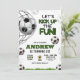 Födelsedagsinbjudan för pojkar - fotboll - Låt oss kicka igång roligt!