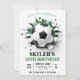 Få redo att starta roligten med den här åtgärdspappade fotbollsfödelsedagsinbjudan! Perfekt för alla fotbollsentusiaster, den här designen har en dynamisk 3D-bild av en fotboll som slår igenom en vägg och skapar ett spännande och högslagande utseende. Den rena, moderna layouten med fet grönt och svart text är perfekt för att fira Skylers tioårsdag. Den här inbjudan kommer säkert att få dina gäster att hysas för en dag av mål, spel och firande. All information är helt anpassade, så du kan enkelt redigera namn, ålder, datum, tid, plats och OSA.