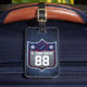 Visa ditt amerikanska pride med det här röda, vita och blå glitter-inspirerade bagagetaggen. En djärv silver-vit sköld rymmer en glitter-fotboll och stjärnor, mot royalets blå gnistra bakgrund. Anpassa med ditt namn och nummer. Underbar för 4:e juli: resa, lag resor eller någon som kärlek fotboll med en patriotisk tvist.