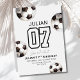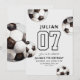 Sätt igång firandet med denna djärva och moderna fotbollsinbjudan! Med en minimalistisk design med svart-vita fotbollar och ett iögonfallande tröjnummer är denna inbjudan perfekt för din unga fotbollsstjärnas födelsedag. Fullt redigerbar för att anpassa med deras namn, ålder och festdetaljer. Bra för fotbollsmatcher i trädgården, inomhusfester eller lagfirande.