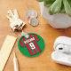Ge efter en fotbollsspelare fläkt. Nyckelring med en fotbollskjorta i rött och grönt rand. Anpassa med ditt val av namn och nummer.