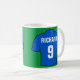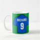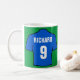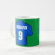 Ge efter en fotbollsspelare fläkt. Mugg med en fotbollskjorta i blått. Anpassa med ditt val av namn och nummer.