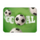 Fotbollar (fotbollar) i rörelse på gröntens bakgrund med vit bokstäver "GOAL".